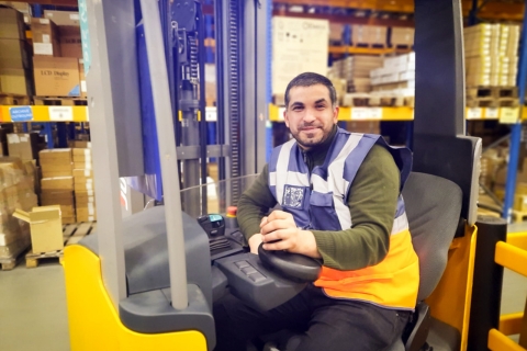 Ekrem Mehmedov. Ekrem Mehmedov lucrează ca șofer de stivuitor pentru rafturi înalte la Versteijnen,