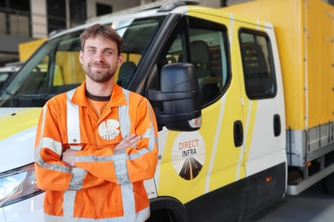 Wojciech Orleanczyk works for Direct Infra. with a team of 10 guys he fixes putholes and cracks in the road. "It is not an easy job' Wojciech explains. " I have seen a lot of guys that come here just for a few days. Then they realize how tough the work can be and they just leave.'